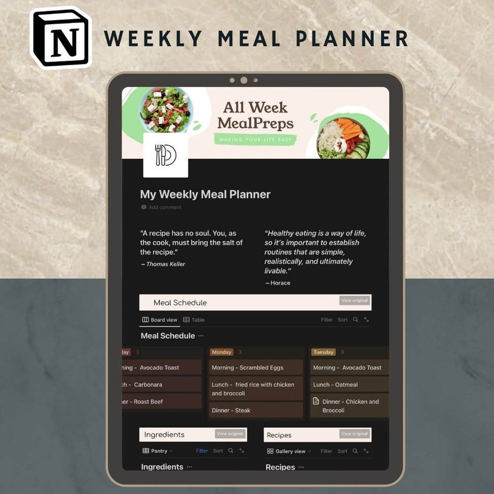 The meal planner is designed to help you plan your meals in advance, so you can take the guesswork out of meal planning and have more time to focus on the things that matter.
